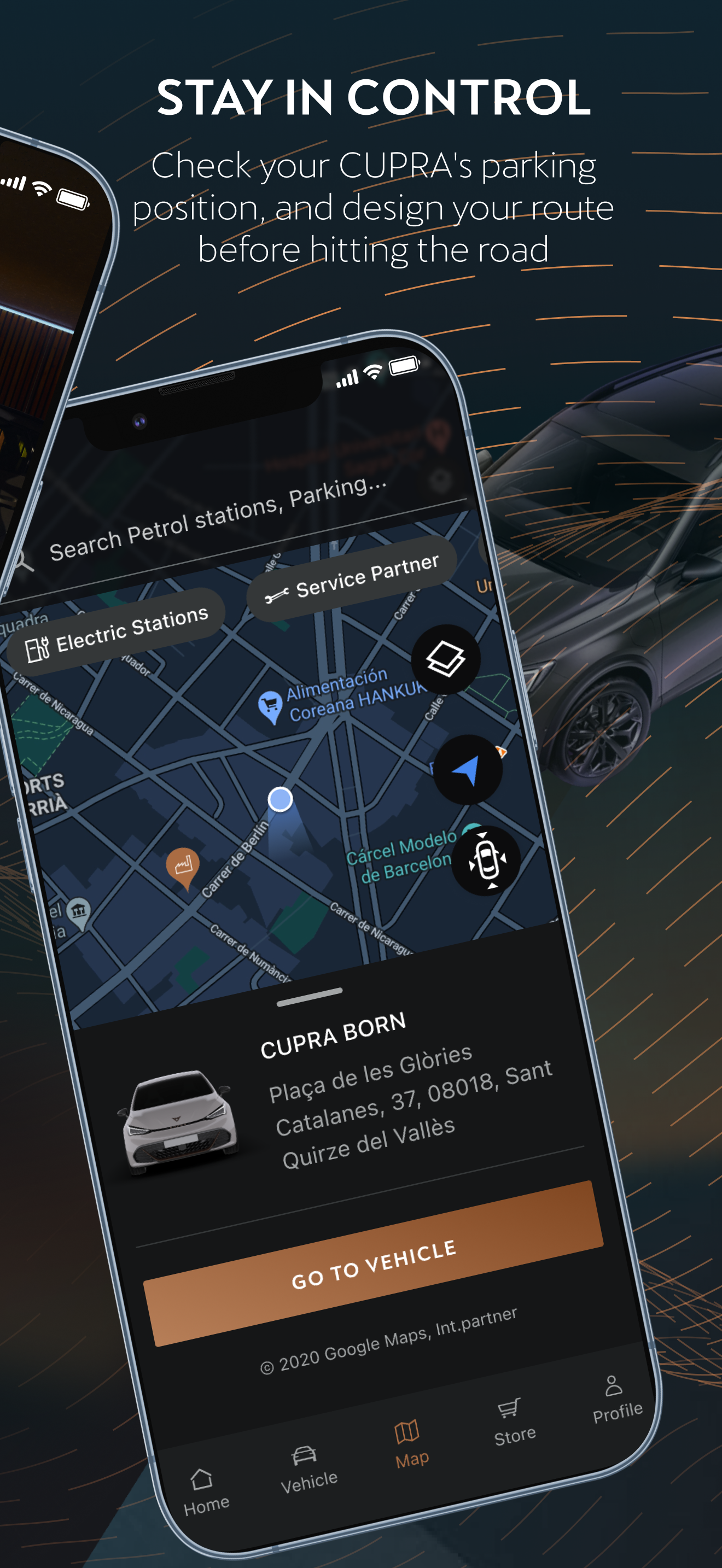 • Deine Route ganz bequem von zu Hause aus mit all Deinen Lieblingszielen und Favoriten, die Du gespeichert hast. Sende sie nahtlos an das Navigationssystem Deines CUPRA.