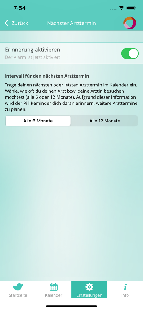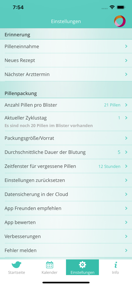 • täglich an die Einnahme der Pille erinnern, bei frei wählbarer Erinnerungszeit.