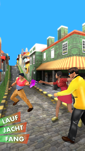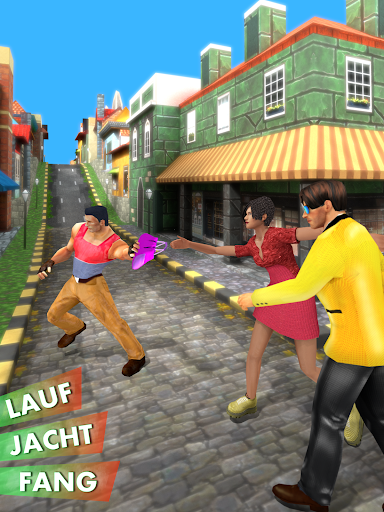 Achte auf Hindernisse, während du durch die Straßen rennst, schlag und tritt sie mit gefundenen Gegenständen, fange alle, um die Handtasche zurückzuholen.