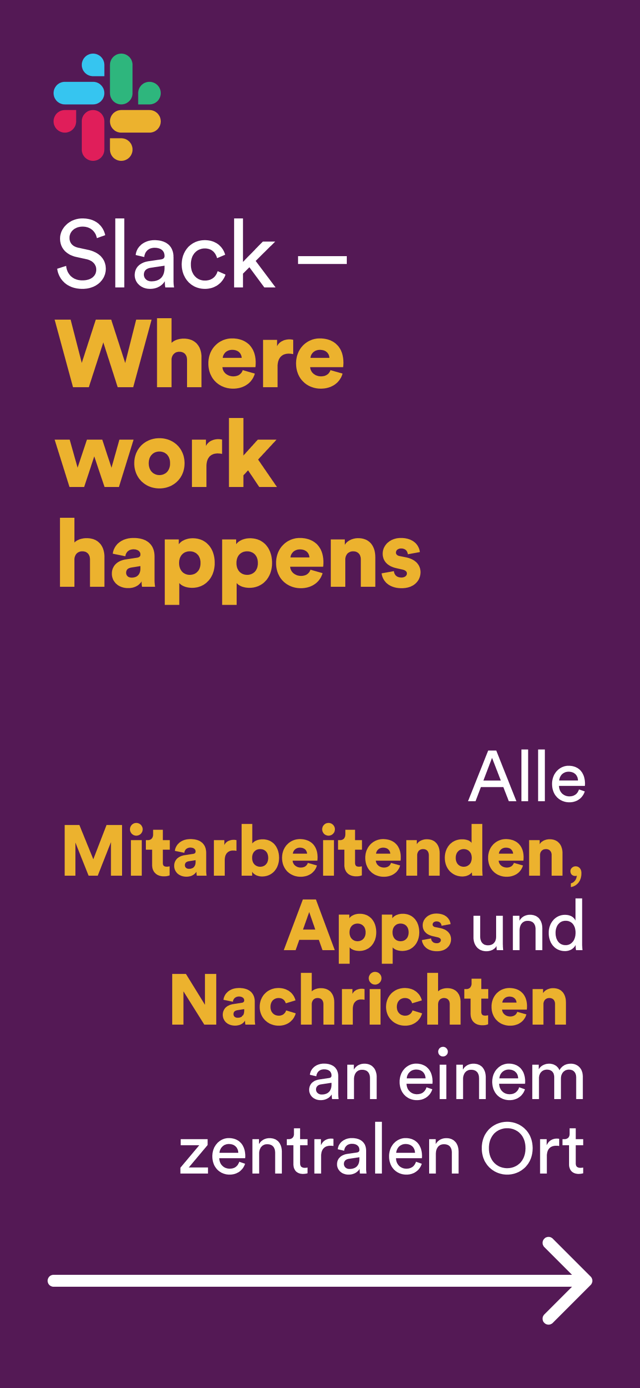 Es ist wissenschaftlich erwiesen (oder zumindest hört man das immer wieder), dass mit Slack dein Arbeitsleben einfacher, angenehmer und produktiver wird. Wir hoffen, dass du Slack einfach einmal selbst ausprobierst.