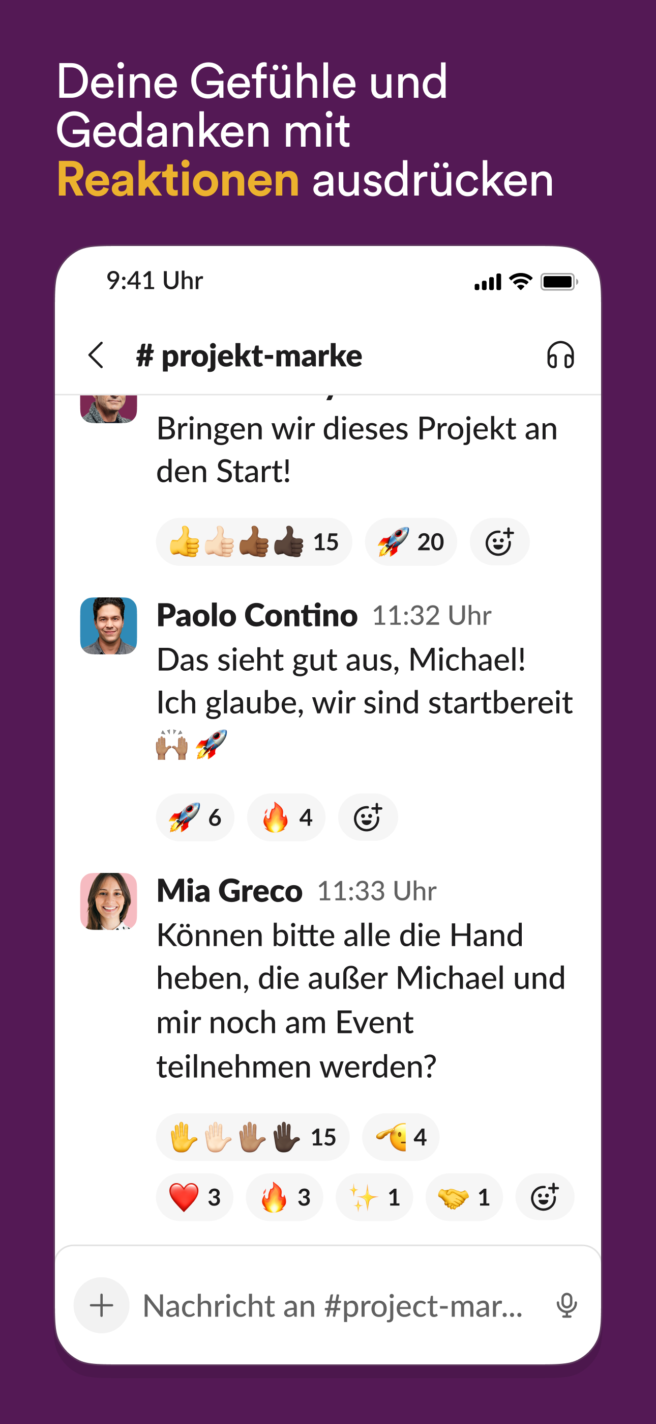 Slack bringt die gesamte Kommunikation und Zusammenarbeit deines Teams an einem einzigen Ort zusammen, damit ihr Arbeit effektiver erledigen könnt, ganz gleich, ob ihr zu einem großen Unternehmen oder zu einer kleinen Firma gehört. Hake deine To-do-Liste ab und treibe deine Projekte voran, indem du die richtigen Leute, Unterhaltungen, Tools und Informationen, die du brauchst, alle in Slack miteinander verbindest. Slack ist auf jedem Gerät verfügbar, damit du jederzeit auf dein Team und deine Arbeit zugreifen kannst, wenn du an deinem Schreibtisch oder unterwegs bist.
