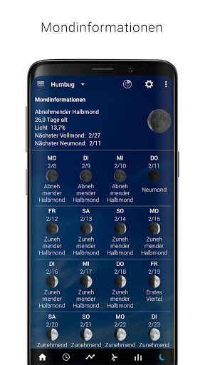 - Erweiterte lokale Wettervorhersagen. 10-Tages-Wettervorhersage, Stundenwetter für 72 Stunden, Stündliche Windvorhersage für 72 Stunden, Stundenwettergrafiken, Tageswettergrafiken und Mondphasen für 60 Tage.