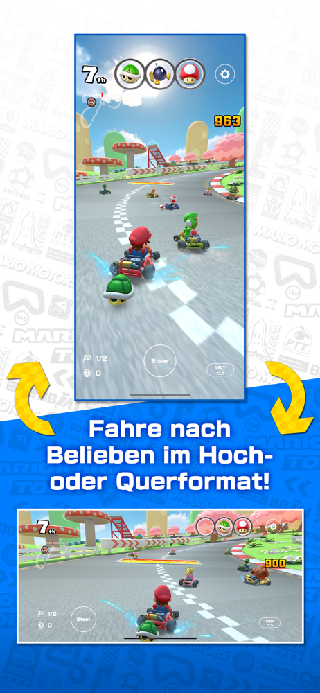 ■Um Mario Kart Tour starten und spielen zu können, ist es notwendig, dass du einen Nintendo-Account erstellst bzw. verknüpfst und dem Vertrag zum Nintendo-Account zustimmst. Die Nintendo-Account-Datenschutzrichtlinie findet Anwendung.