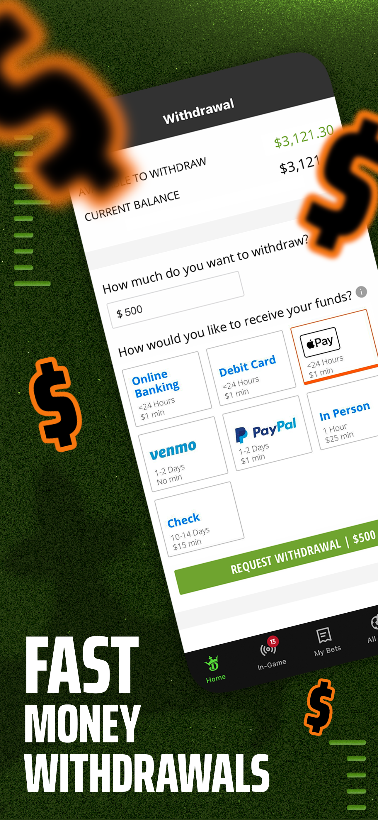 We’ve got many ways for you to bet — and win. Put your money on the line with live/in-game bets, cross-sport parlays, moneylines, round robin bets, futures, spread betting, prop bets, same game parlays and more. Or simply pick the winner in pools to win prizes.