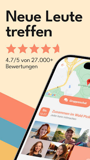 Du kannst an Treffen anderer Nutzer teilnehmen oder selbst Treffen erstellen. Chatte vor und nach dem Treffen mit den anderen Teilnehmern im Gruppenchat. Dabei sind alle Funktionen rund um die Treffen kostenlos.