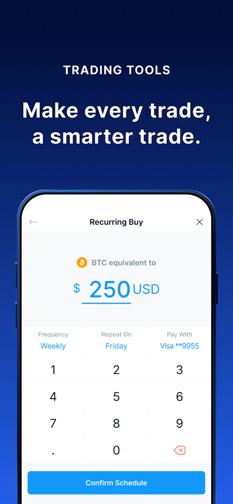 • Set up recurring crypto purchases daily, weekly, or monthly with friendly trading tools.