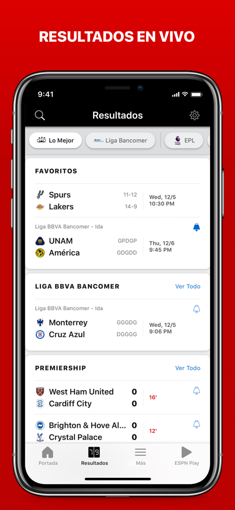 ESPN te ofrece lo mejor del deporte. En cualquier lugar, en todo momento, ESPN App te trae eventos en vivo, los mejores videos, toda la información al instante y resultados minuto a minuto en un solo lugar ¡Además se puede personalizar para recibir las alertas de tus equipos y ligas favoritas!