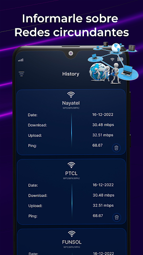 La aplicación Analizador Wifi - Speed Test es un medidor de velocidad de Internet gratuito que mide la velocidad de descarga y la latencia de la red. puede verificar la intensidad de la señal wifi y comparar dónde está el punto de señal más fuerte con la aplicación SpeedTest.