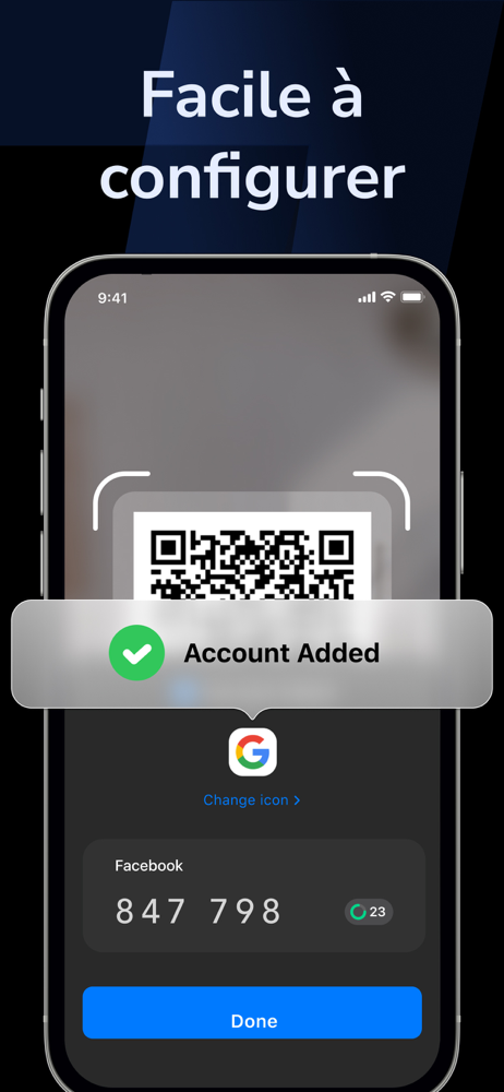 Scannez le code QR ou saisissez-le manuellement pour ajouter des comptes.