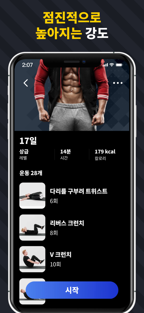 뱃살을 빼고 단단한 배, 식스 팩 복근을 만드세요 - 이 3가지 레벨의 운동 계획이 단계적으로 뱃살을 빼고 복근을 만들 수 있게 도와줍니다. 초보와 프로 모두 자신에 맞는 운동을 찾을 수 있습니다. 매일 다른 운동이 준비되어 있어 항상 신선하고 흥미롭습니다.