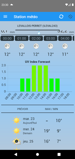 Bonjour, J'aime bien cette application. Cependant il y a une chose que je comprend pas. Le graphique de Température et Pression atmosphérique m'indique la prévision et non l'historique. Je n'ai pas trouvé dans les paramètres une option permettant de changer cela. Un graphique m'indiquant les prévisions n'a pour moi que très peu d'intérêts. Si vous avez une solution, je suis preneur. Si je peu visualiser l'historique, j'augmente le nombre d'étoiles.
