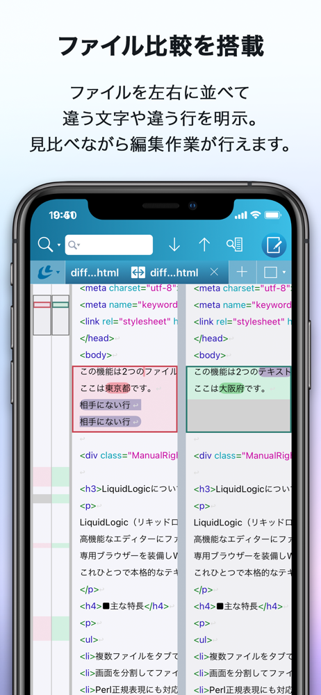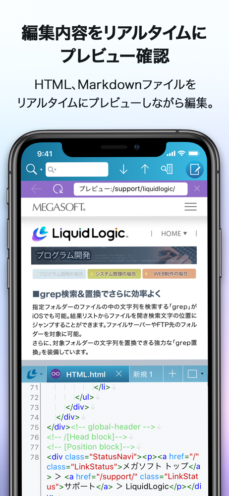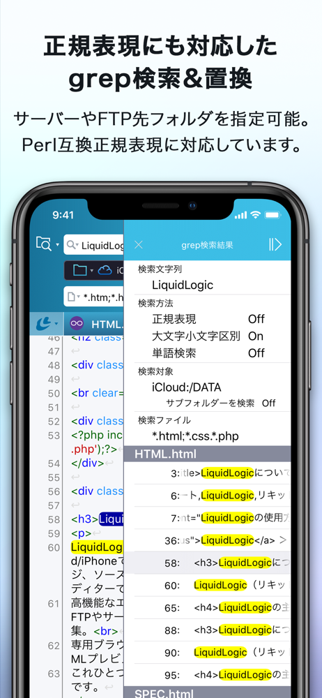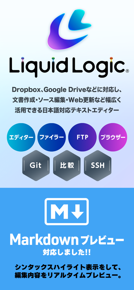 LiquidLogic(リキッドロジック)は、iPad/iPhoneでテキストファイル、Webページ、ソースコードを編集できるテキストエディターです。