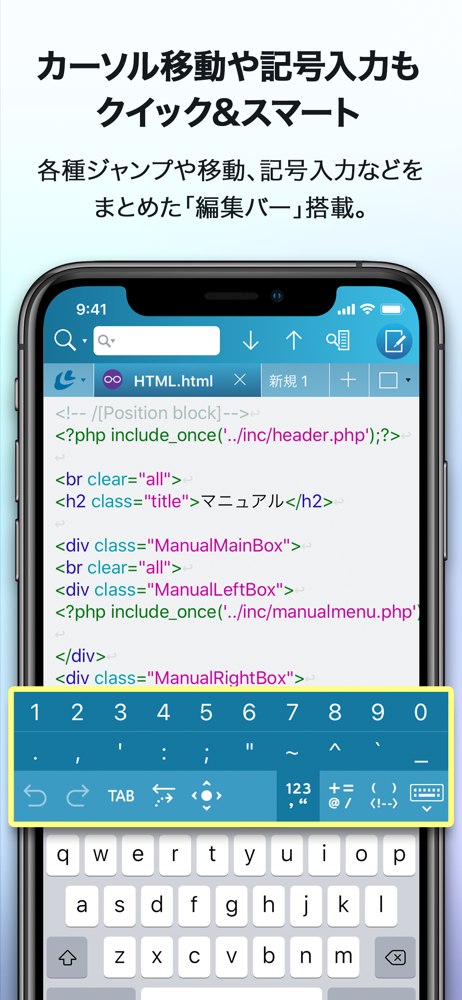 cross_platform_consistencyupdates_and_maintenanceiPhoneとMacをiCloudで繋いでコーディング出来るなんて、これは新時代の幕開けです。 もう、PC持ち歩く意味がなくなるくらいの開放感! そしてメモはこれで十分。 カーソルボタンもマウスのように凄く便利。 正規表現置換も¥1が使えるなんて最高! 仕事でみんなが使ってるあのナントカエディタを持ち歩いてる感覚。 しかし、気になる点 PythonではTABは¥tではなくspace n個で入れたいですね。 iCloudに置いたhtmlをプレビューしながらファイルに書き込むと再描画のダイアログが面倒です。止める設定があったかな? それでも、最高です。 年間金額も嬉しい価格。 ありがとうございます! version1.0.7 htmlのプレビュー時の再描画ダイアログが止まりました! ありがとうございました!
