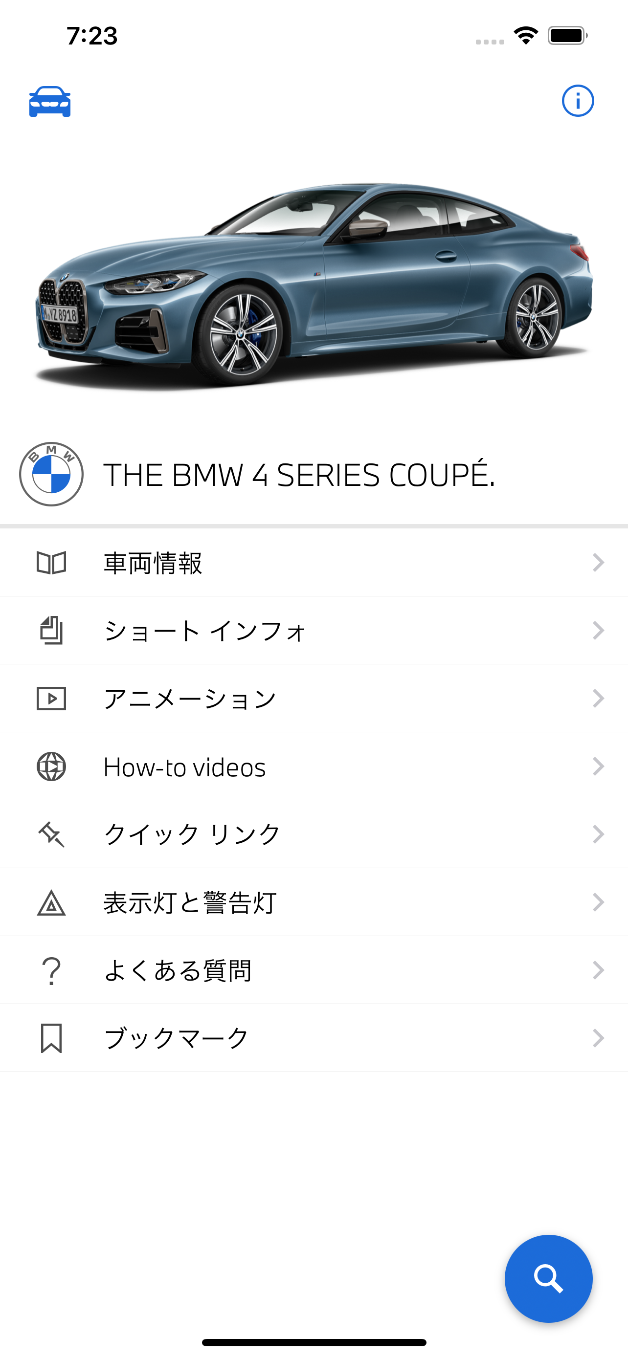 車両識別番号(VIN)を入力すると、適切なモデル固有の車両情報がダウンロードされ、オフラインでも利用できます。BMW Driver’s Guideで複数の車両を管理できます。