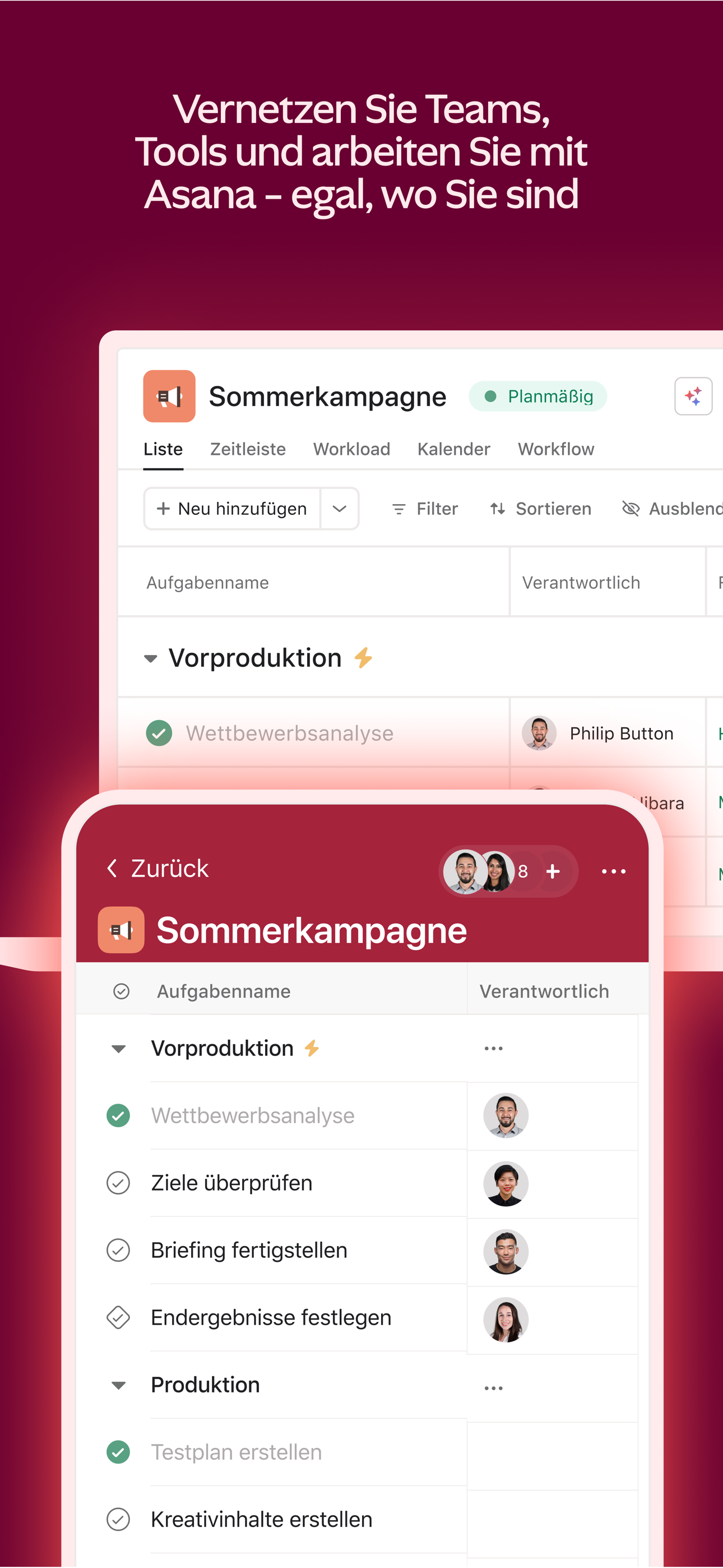 Jetzt die mobile Work-Management-App von Asana herunterladen.