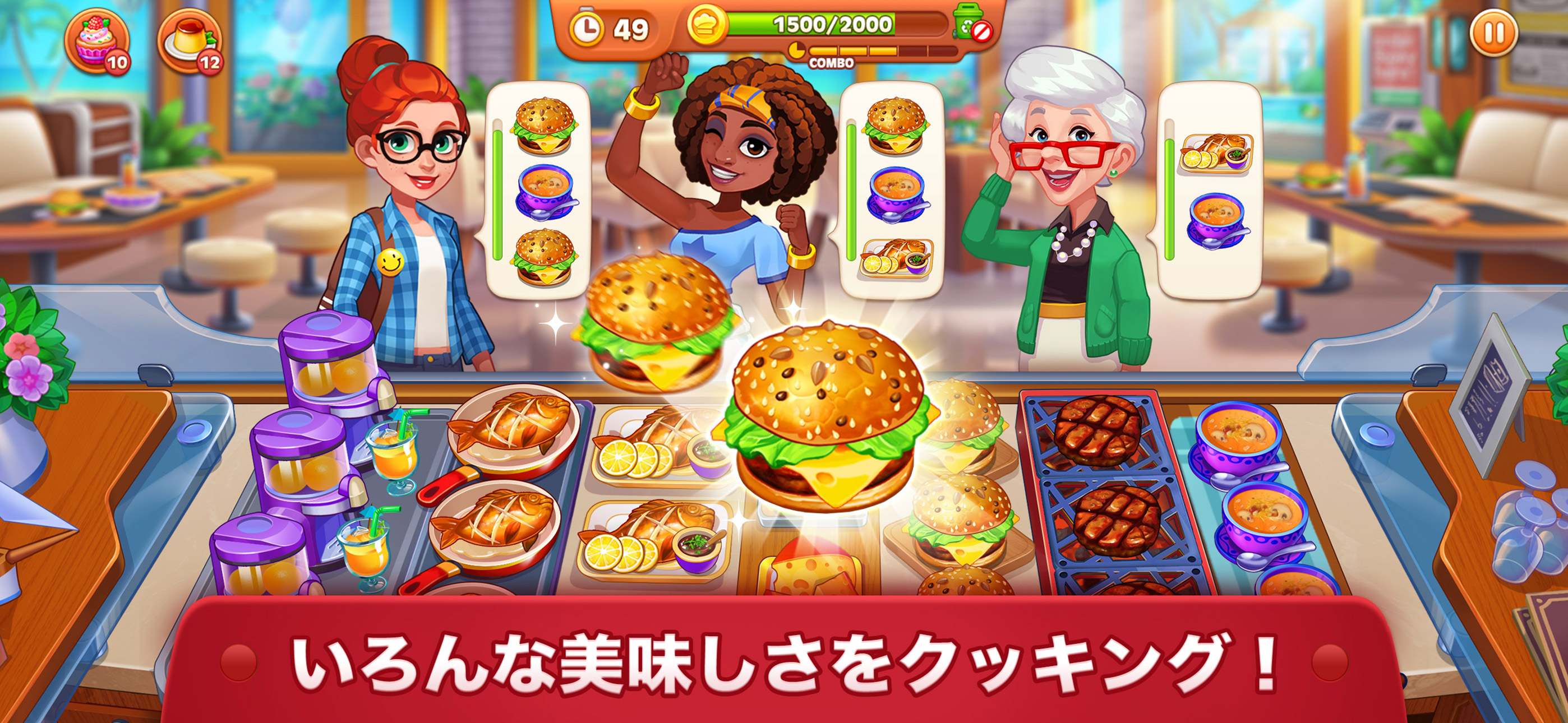 - 全世界で数百万人ものプレイヤーに愛される本作には、75を超える各種レストラン、そして歯ごたえある3000以上のレベルがあなたを待っています!数多に存在する食材を使って、様々な料理を提供しましょう!