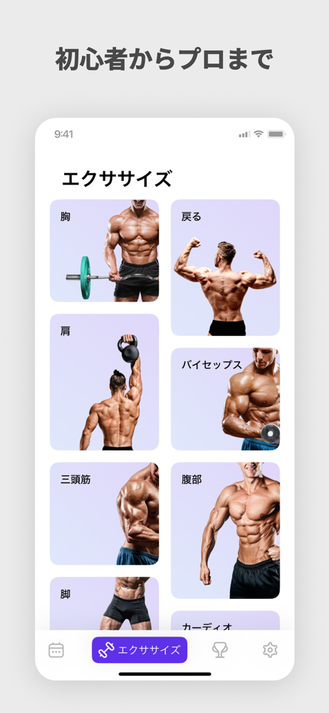• さまざまな筋肉グループに効果を持つトレーニングライブラリ。