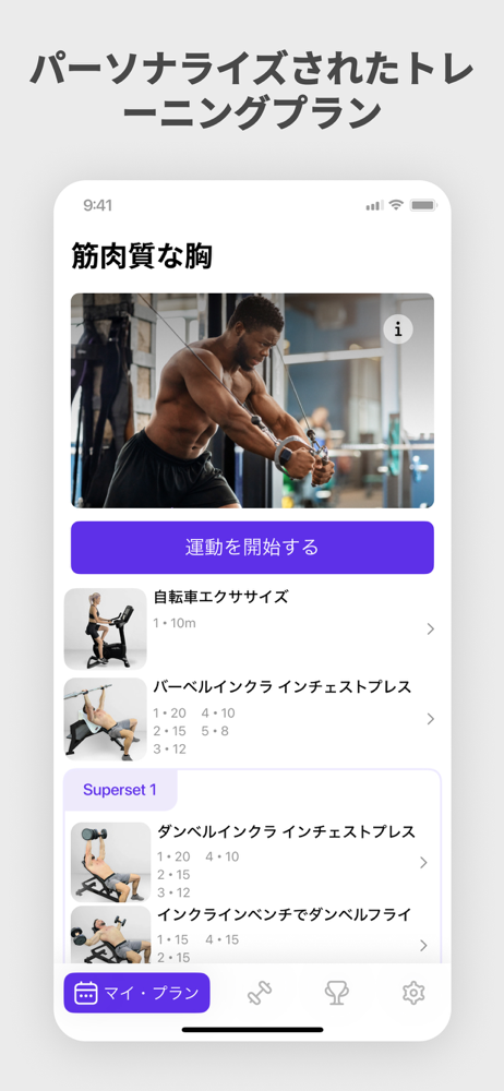 • エクササイズの幅広いライブラリをさまざまな筋肉グループで使用して、個人のトレーニング計画を作成できます。