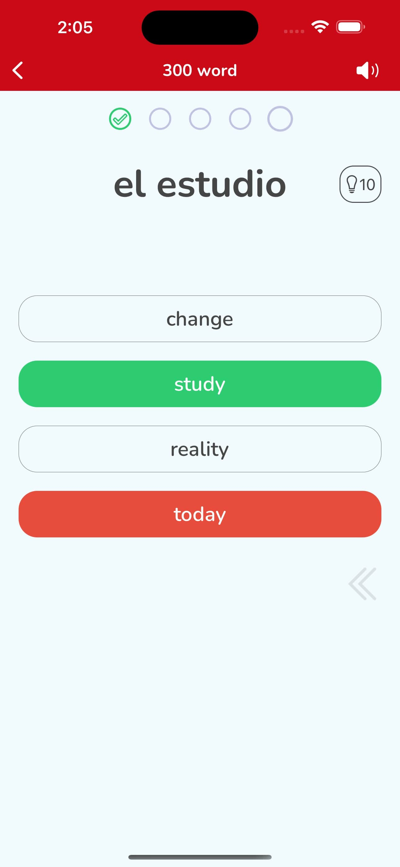 In app 3000 popular words of the Spanish language. Continuing in learning is 20 words. As one word was 5 times continuously responded correctly, the word is sent to the learned and a new word is added from the base. Thus, the application allows you to train high-quality words