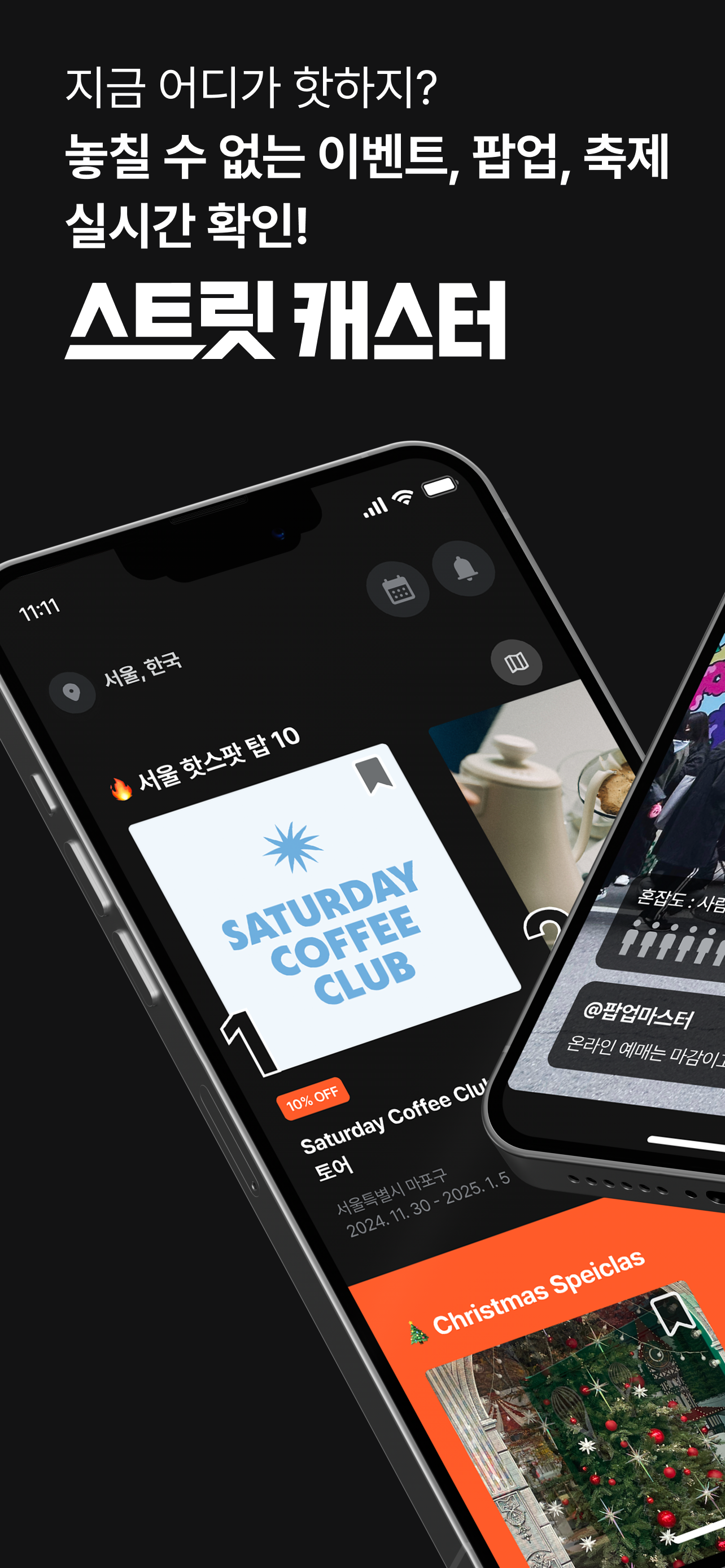 [스트릿 캐스터]는 지금 핫한 곳이 어딘지, 그 곳의 실시간 상황이 어떤지 보여주는 실시간 핫플레이스 플랫폼이예요!
