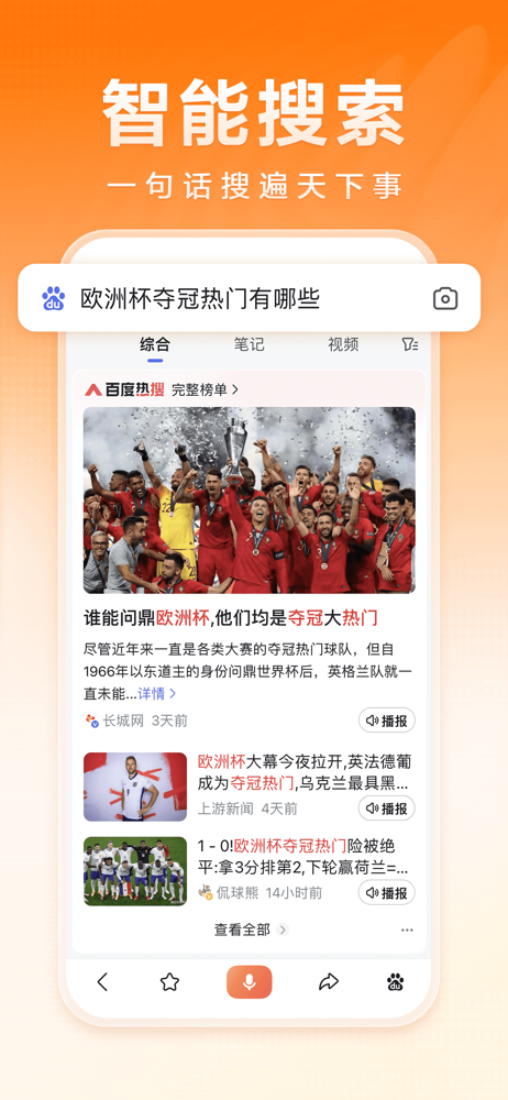 更懂中文的语音搜索识别技术,支持语音播报资讯,智能识别语音输入,嘈杂环境也可精准识别,彻底解放双手。
