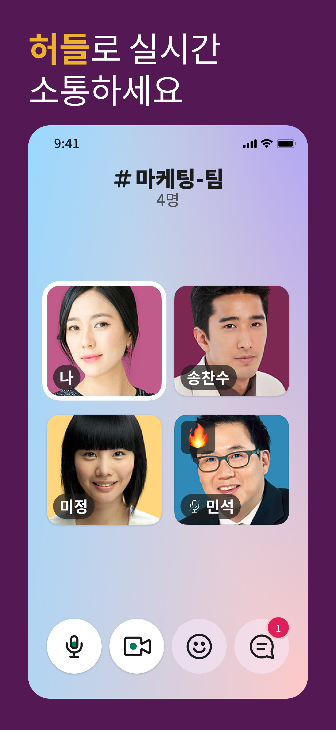 • 팀 내의 사람이나 그룹에게 메시지 전송 또는 전화