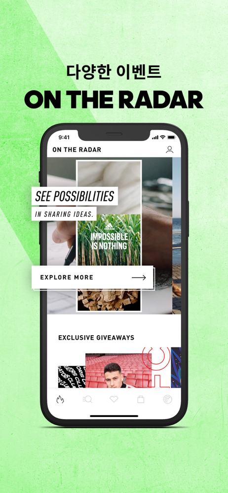 YOUR ADIDAS - MORE THAN A SHOPPING APP. 스포츠의 모든 것. 아디다스 앱에서 만나보세요. 새롭게 발매되는 스니커와 어패럴 컬렉션 소식에서 내 스타일에 꼭 맞는 스포츠 기어와 패션 제품까지. 다양한 스토리와 익스클루시브 제품으로 여러분을 찾아갑니다.