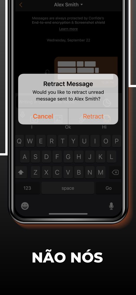 A tecnologia patenteada do Confide garante que mensagens não sejam capturadas pelos destinatários. Passaportes, cartões de crédito, documentos pessoais e mensagens confidenciais permanecem protegidos.